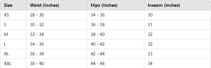 Here is size chart for website, formatted for an English page. The chart includes sizes for men, women, and children in different categories such as tops, bottoms, and footwear.